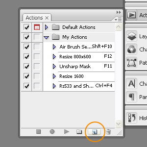 To create a new Action, click the New Action button within the Action window. If the Action window isn’t on your screen, click Window > Action from the main menu or press Alt + F9 (Windows) on your keyboard.